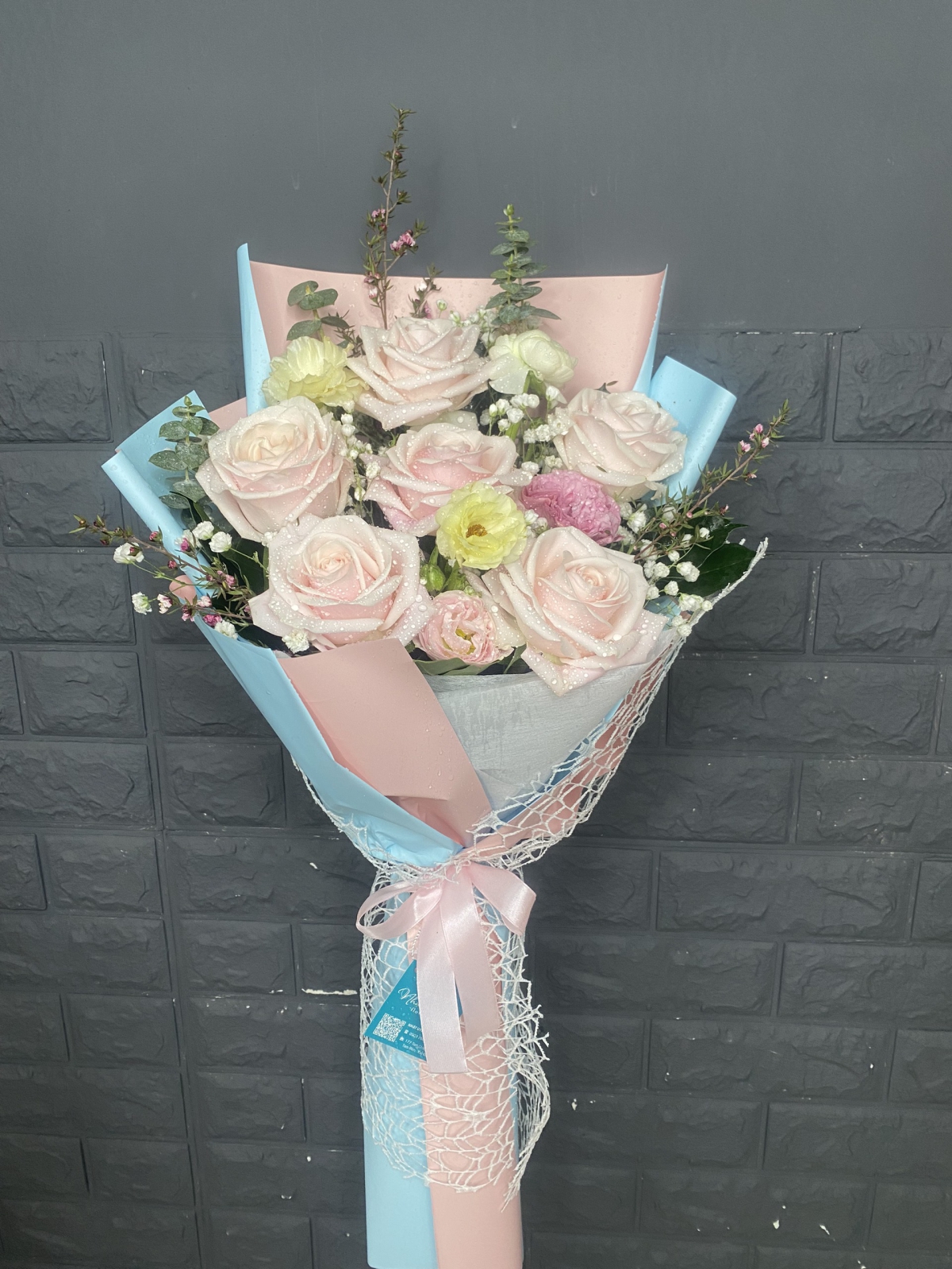 Nguyên liệu Hoa: Hoa Hồng Phấn, các phụ kiện hoa lá khác