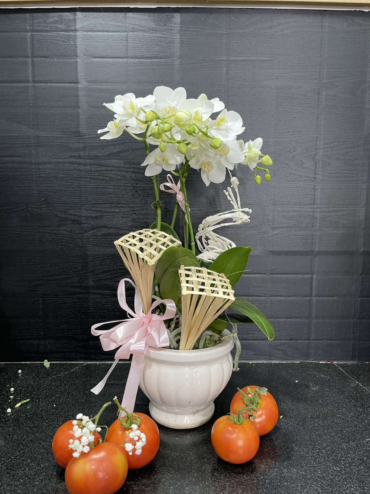 Chậu Lan Hồ Điệp Trắng Chúc Mừng HCM-0011