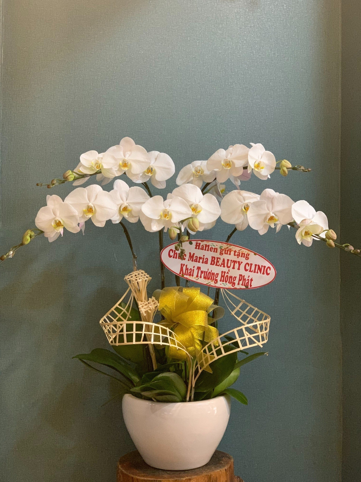 Chậu Lan Hồ Điệp Trắng Chúc Mừng HCM-0066