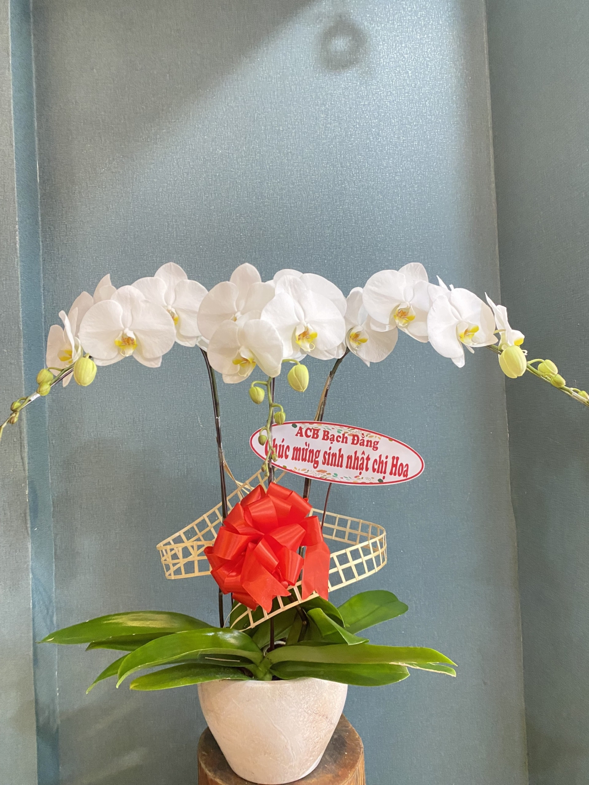 Chậu Lan Hồ Điệp Trắng Chúc Mừng HCM-0200