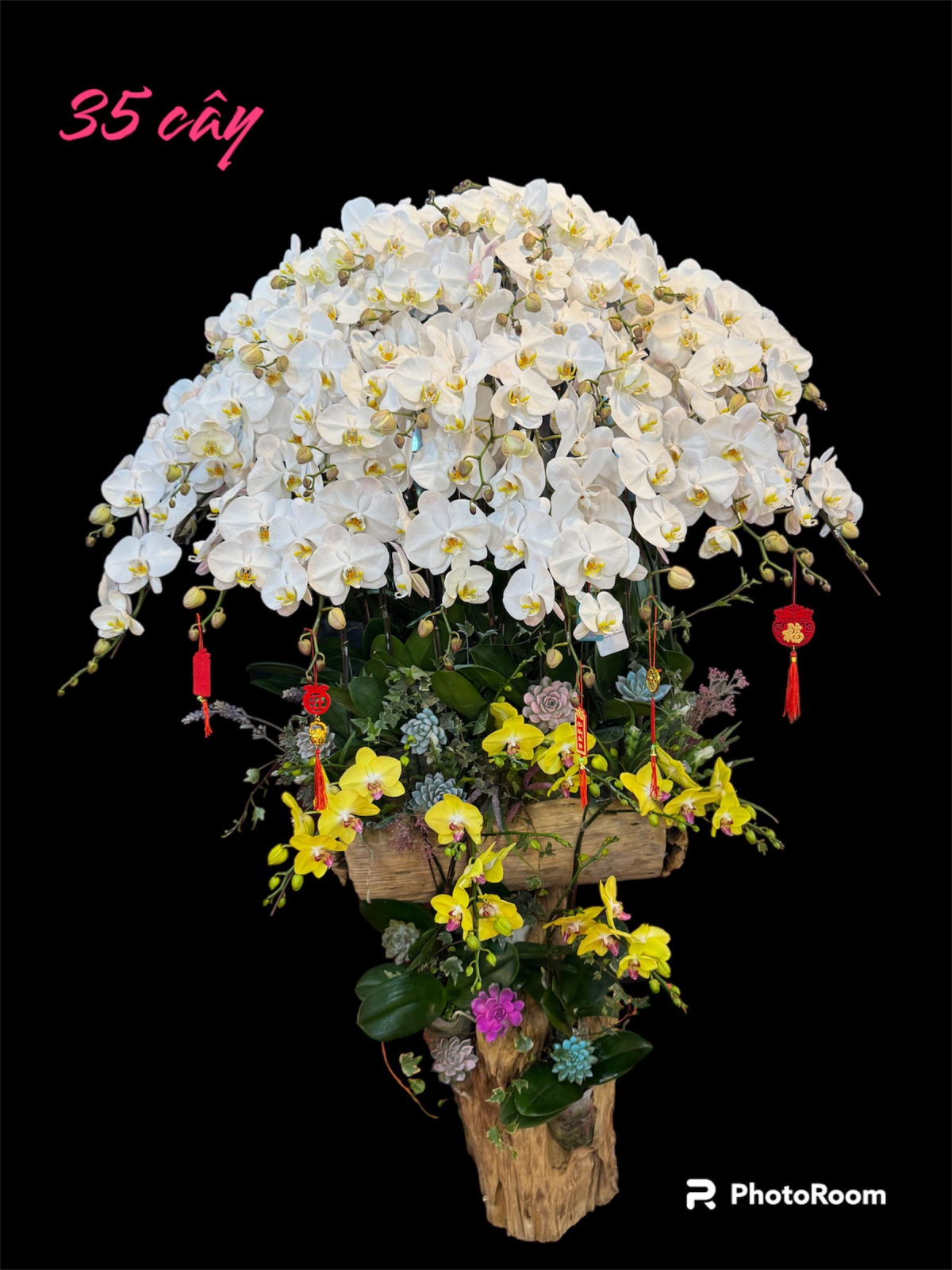 Chậu Lan Hồ Điệp Trắng Chúc Mừng HCM-0203