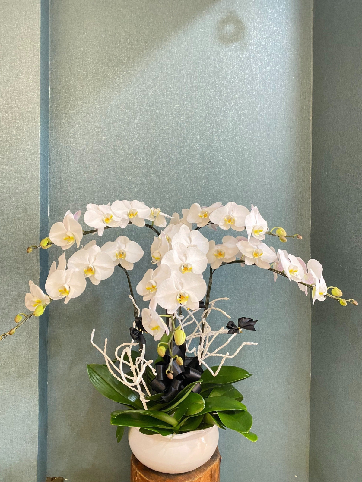 Chậu Lan Hồ Điệp Trắng Chúc Mừng HCM-0211