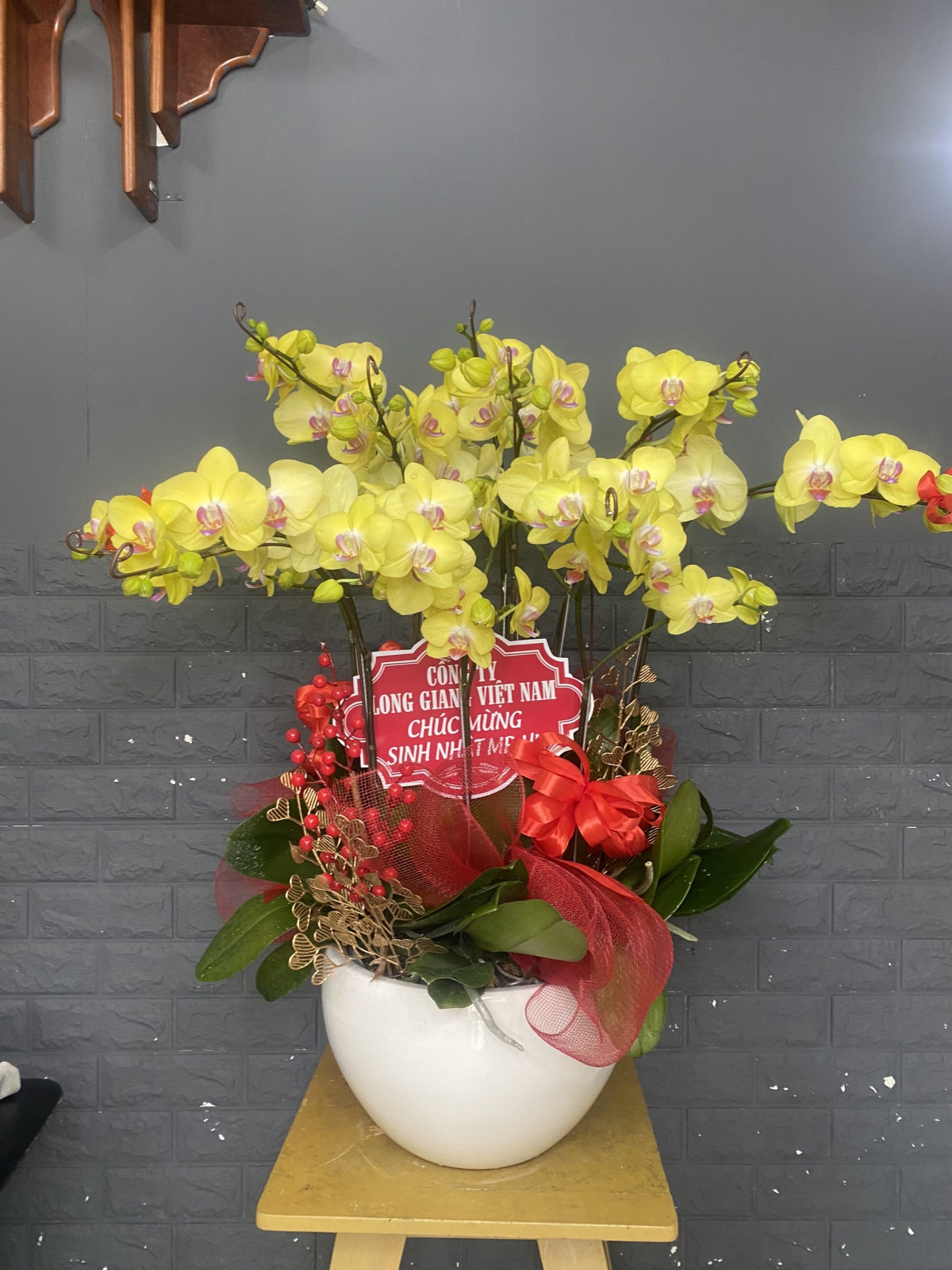 Chậu Lan Hồ Điệp Vàng Chúc Mừng HCM-0004