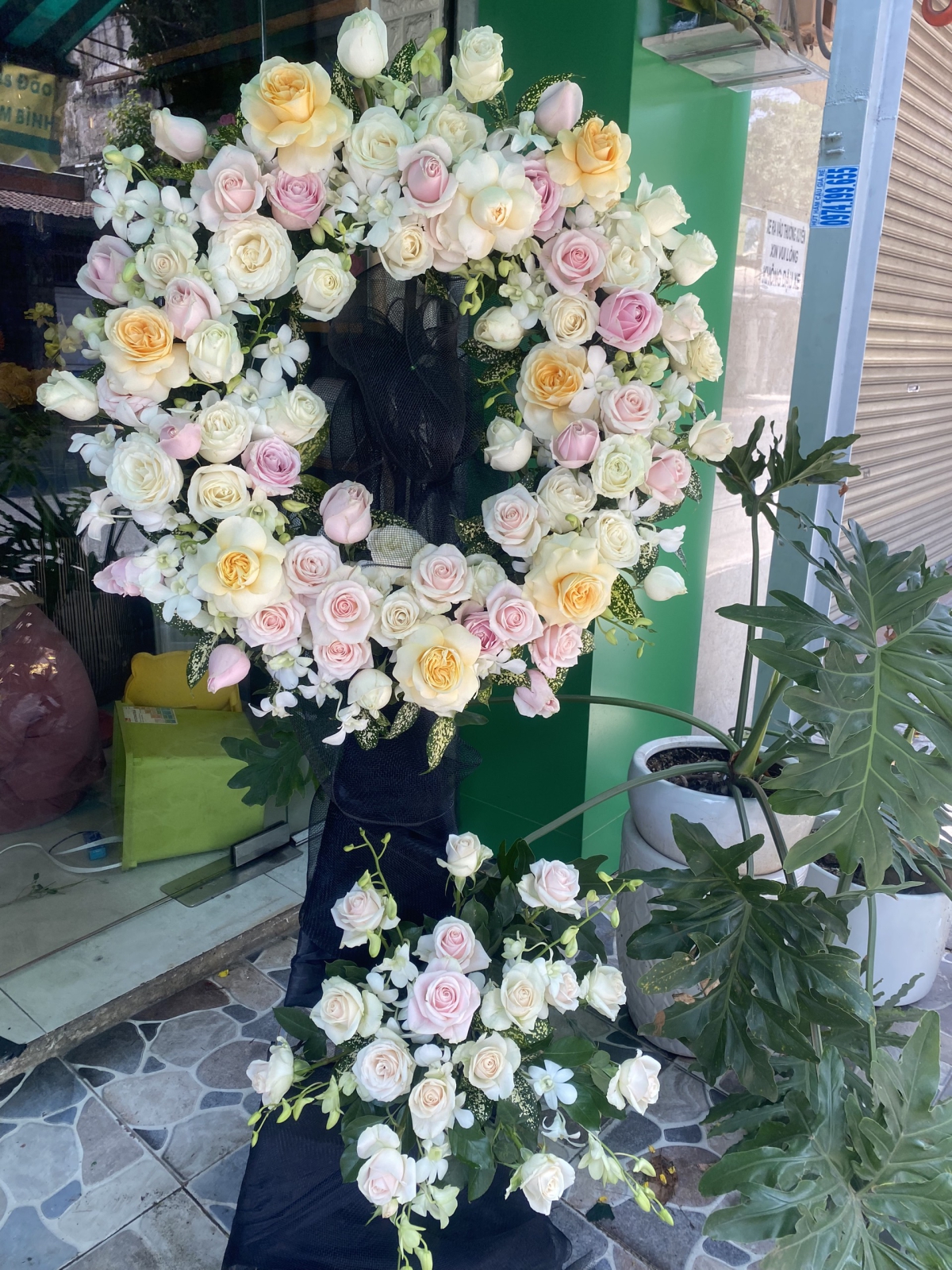 Kệ Hoa Tươi Chia Buồn - Vòng Hoa Hiện Đại CB-001